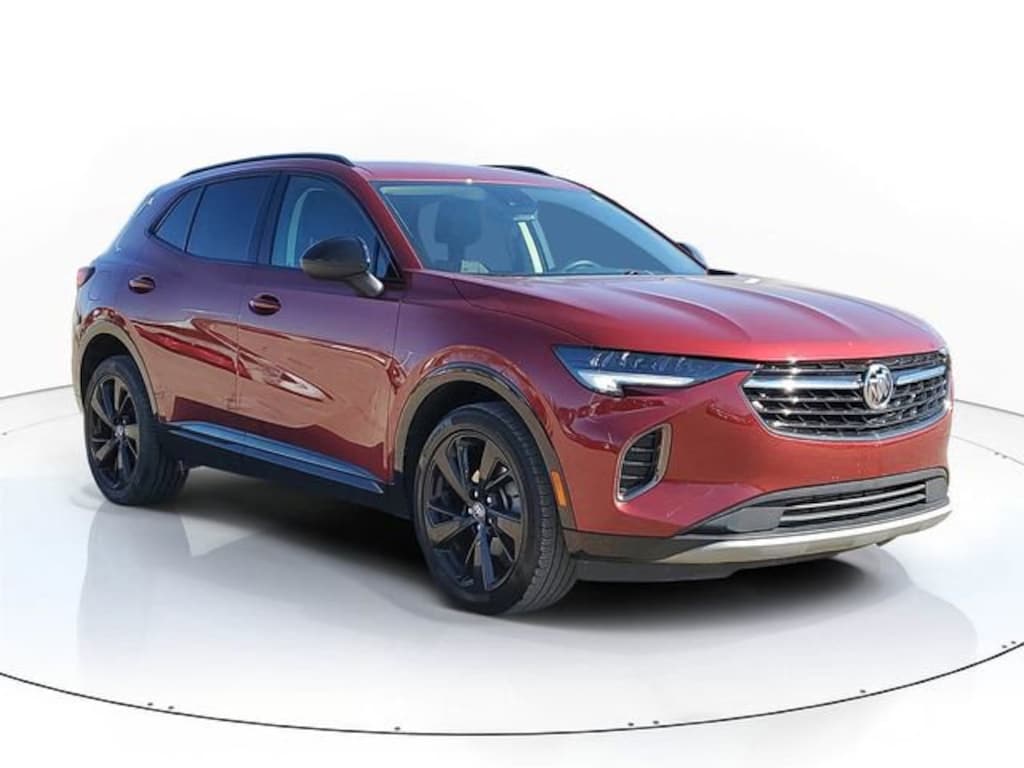 The 2023 Buick Envision Preferred AWD in Cinnabar Metallic with Ebony interior is powered by a 2.0L turbo engine paired with a 9-speed automatic transmission for a smooth, confident drive.